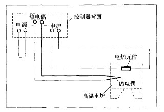 炉内的温度控制目前普遍采用温度控制器。温度控制器主要是由一块毫伏表和一个继电器组成,连接一支相匹配的热电偶进行温度控制,其接线如图所示。