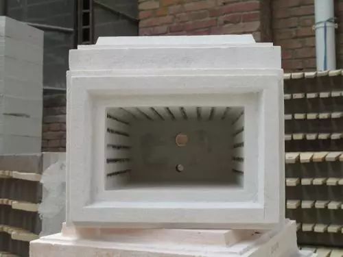 马弗炉的炉膛是由耐高温而无涨缩碎裂的氧化硅结合体制成的。炉膛内外壁之间有空槽,炉丝串在空槽中,炉膛四周都有炉丝,如图所示。所以,通电以后,整个炉膛周围被均匀加热而产生高温。